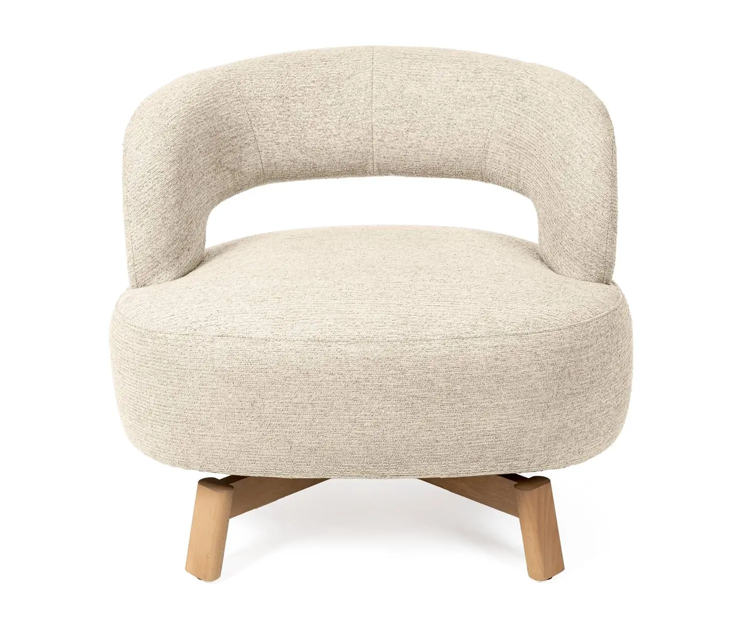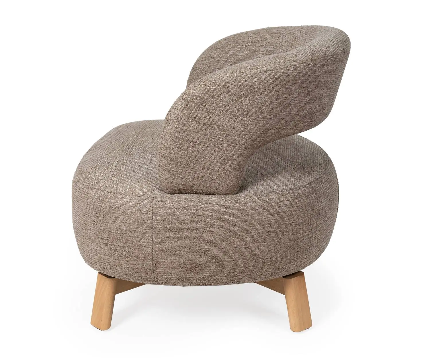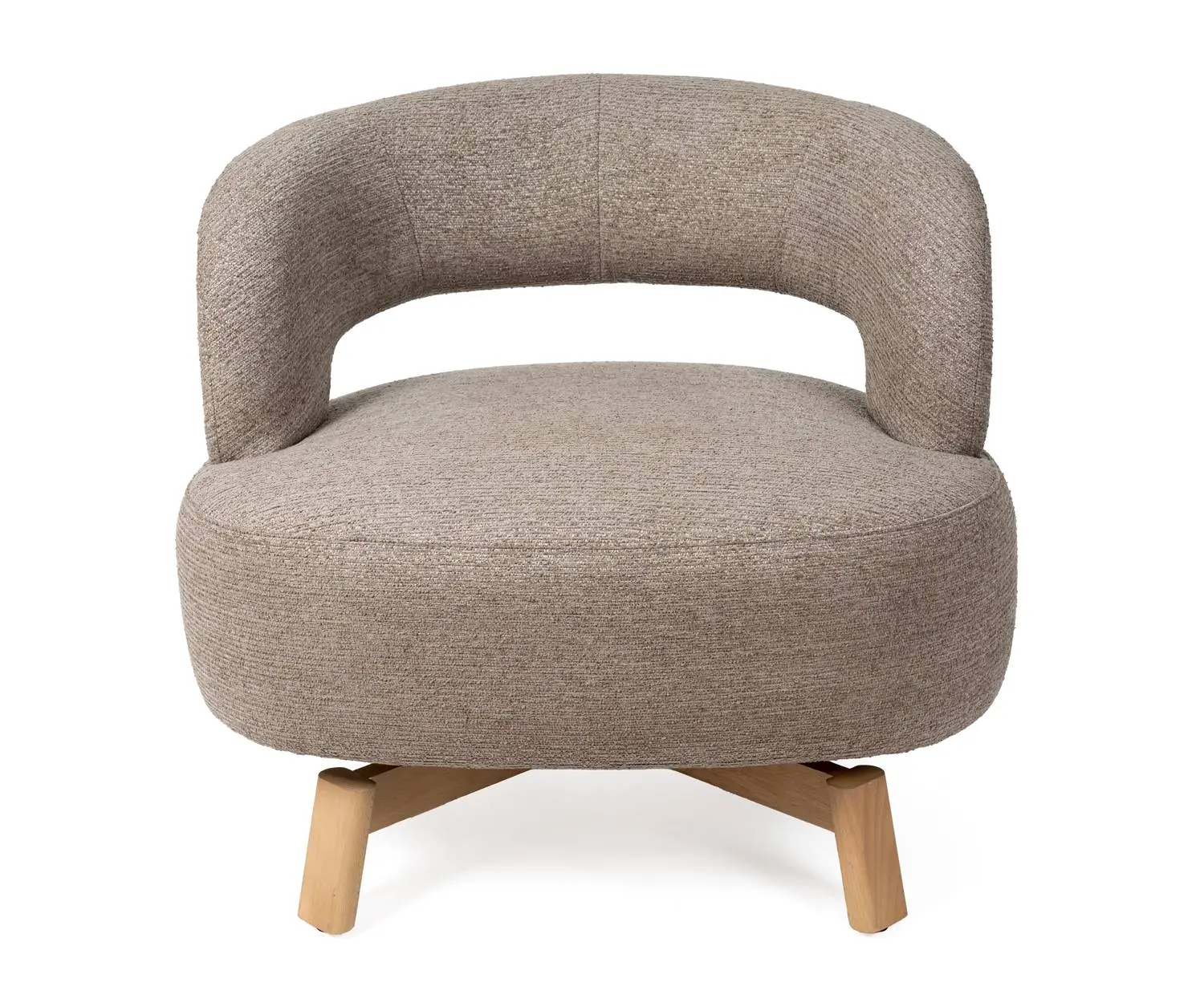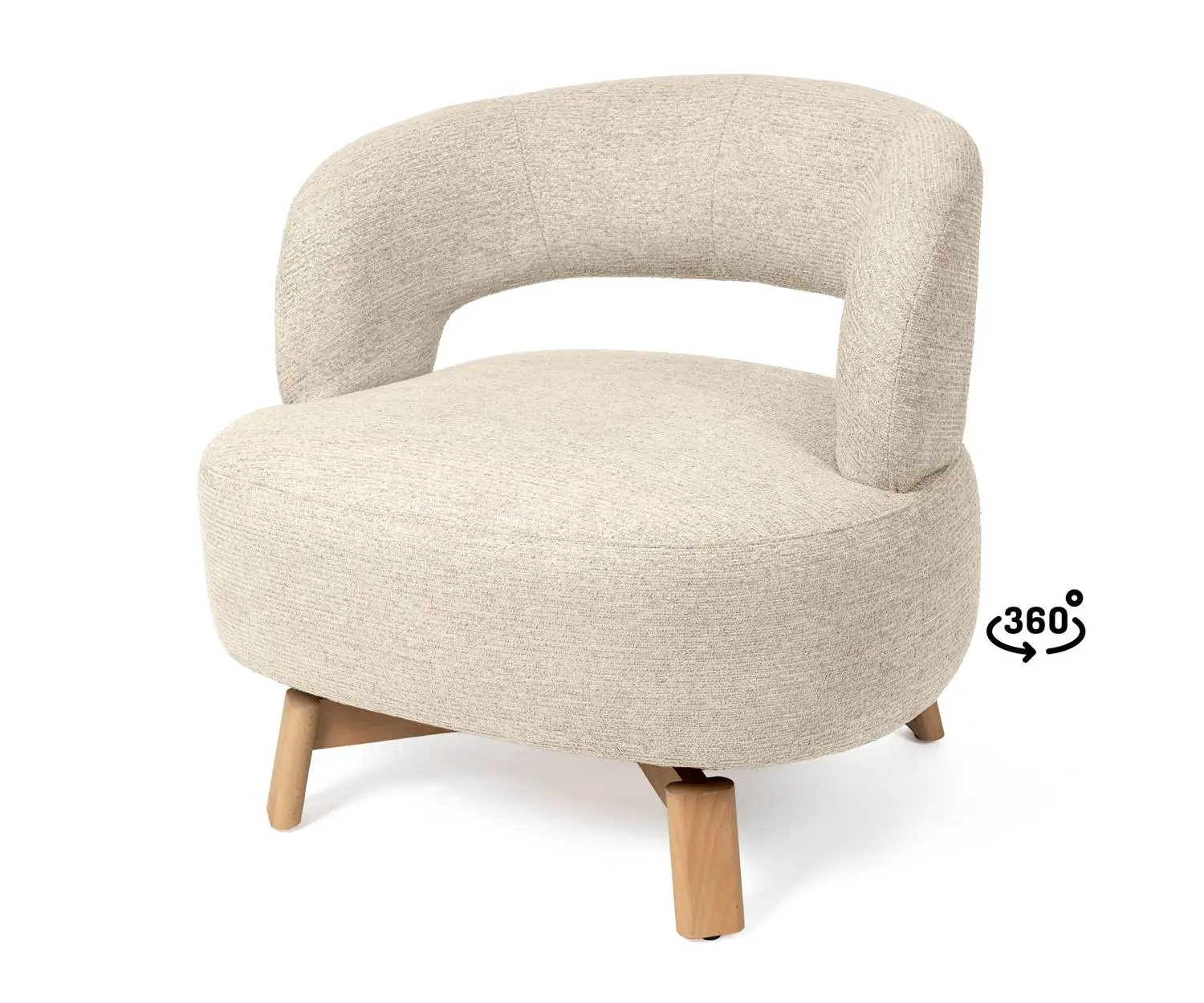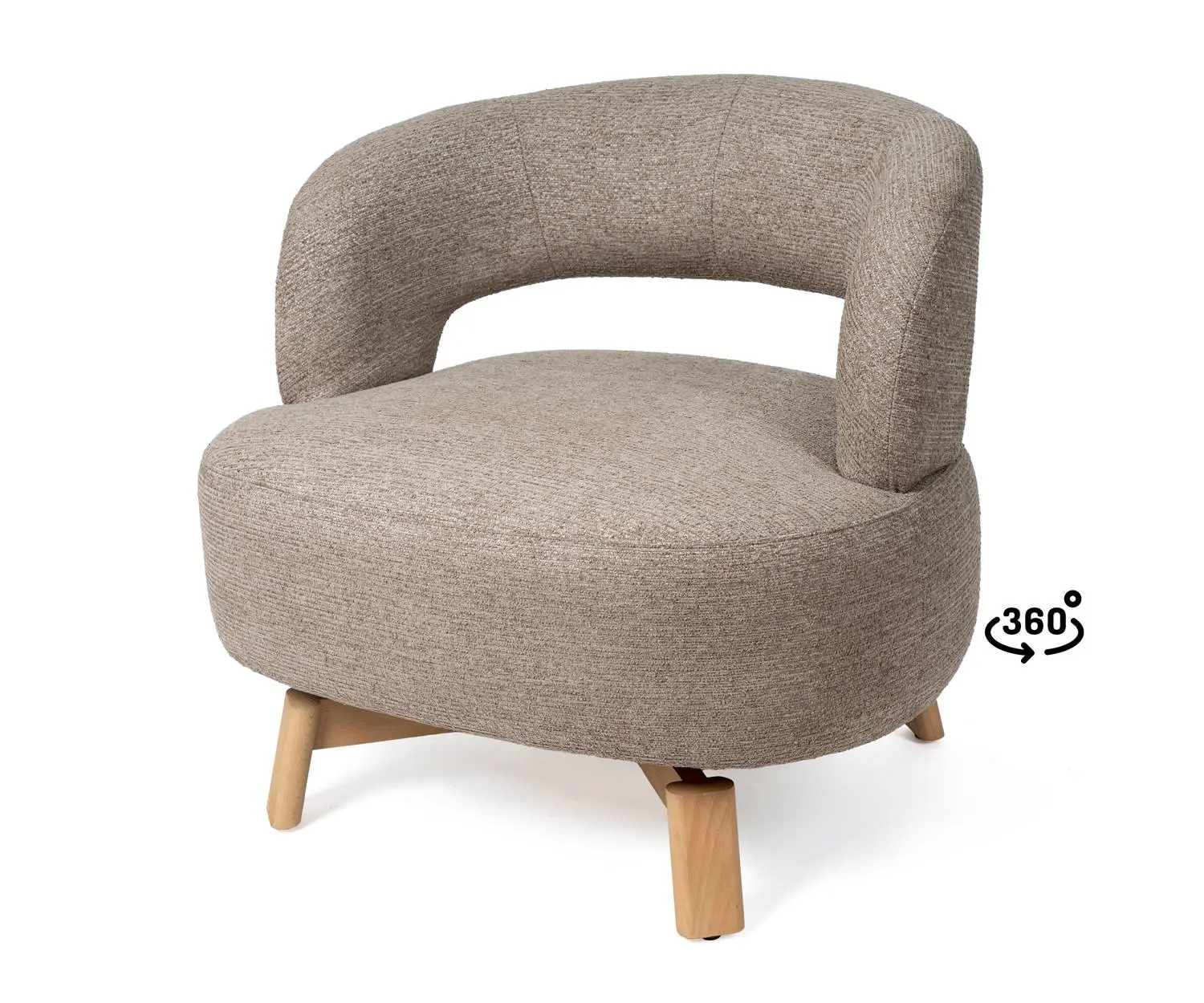La butaca BOGOTA tiene diseño envolvente con tapizado en beige y taupe y patas de madera de haya. Su mecanismo giratorio de 360° permite movimiento total, mientras que el respaldo abierto aporta libertad sin perder comodidad. Perfecta para salones modernos o rincones de lectura.
