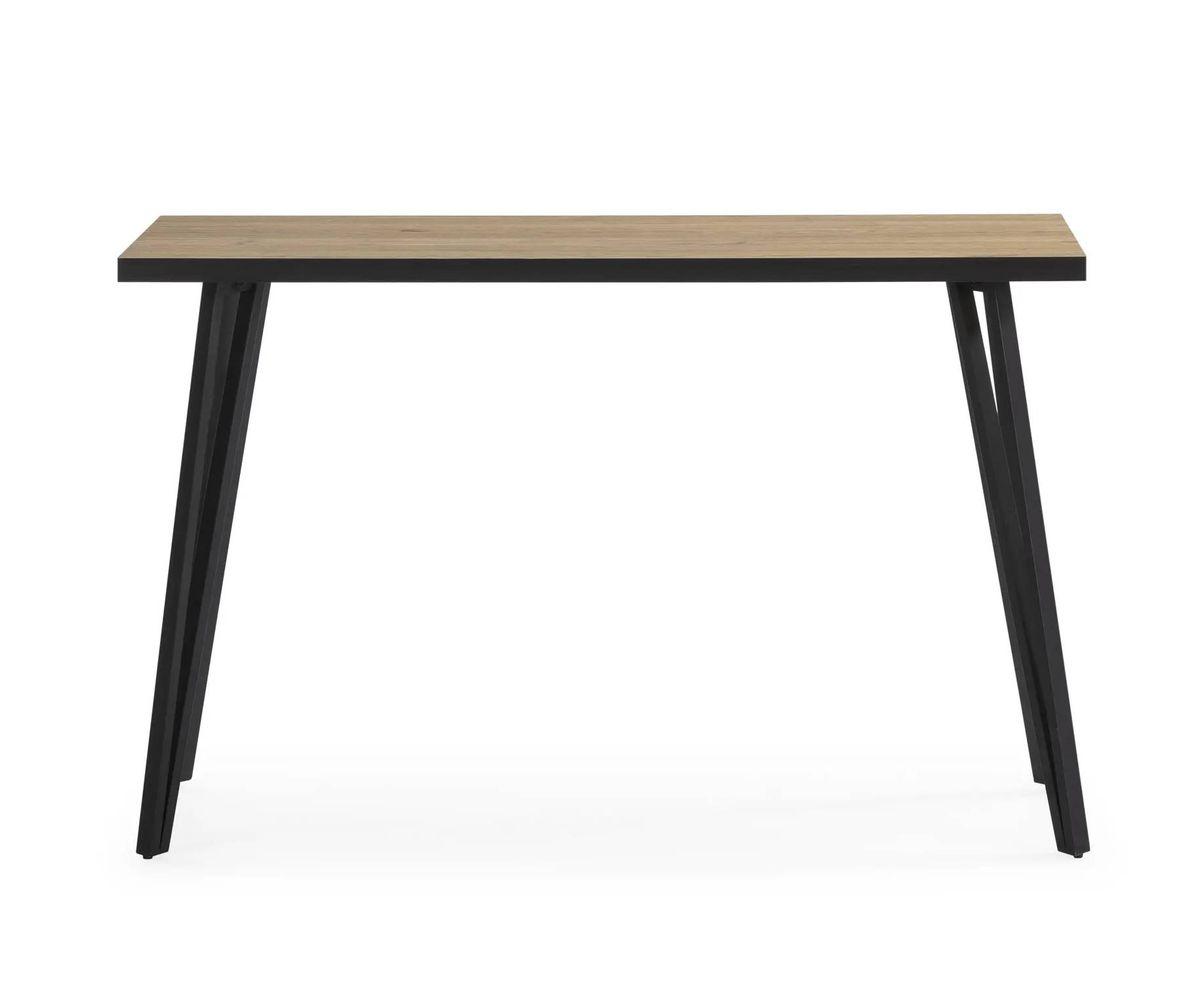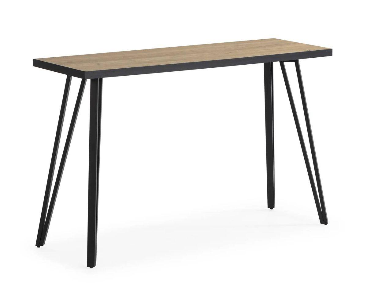 Con sus medidas de 120 x 40 x 77 cm, la consola Sindi es la pieza ideal para pasillos, entradas o espacios que necesitan almacenaje sin sacrificar estilo. Con sus patas de metal negro estilo hairpin, aporta un toque industrial moderno que se adapta a cualquier decoración contemporánea.