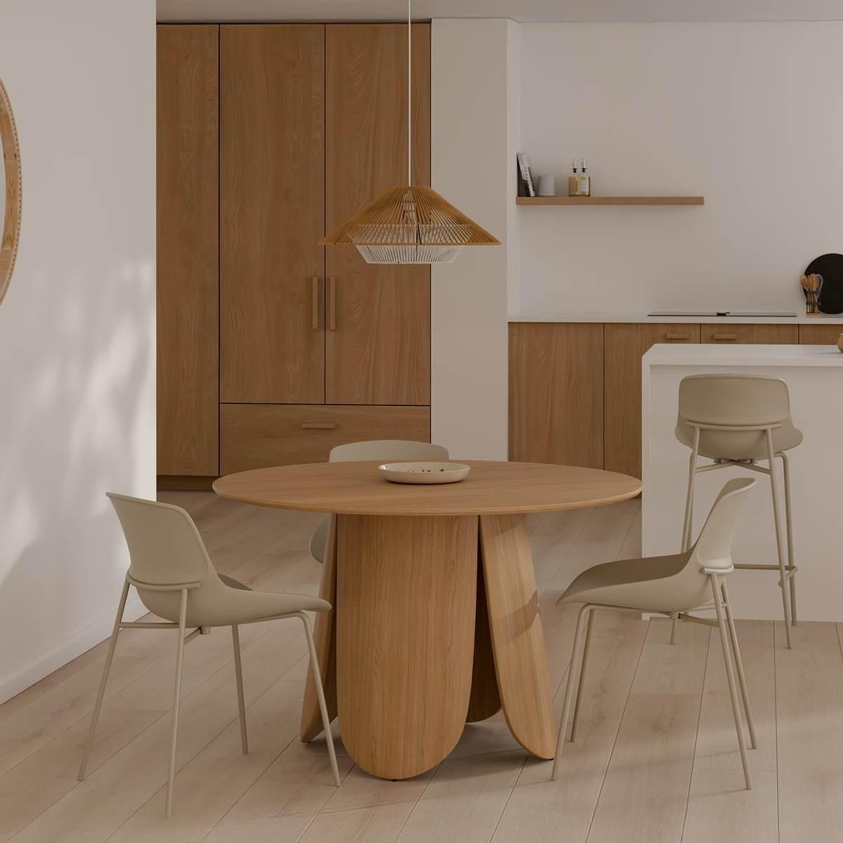 Compatible con bombillas 220/240 E27 de hasta 40W máximo (bombilla no incluida), esta lámpara colgante se adapta perfectamente a comedores, salones o cocinas donde busques crear un punto focal con personalidad. Su estructura artesanal en tonos naturales la convierte en una pieza versátil que complementa tanto estilos modernos como rústicos.