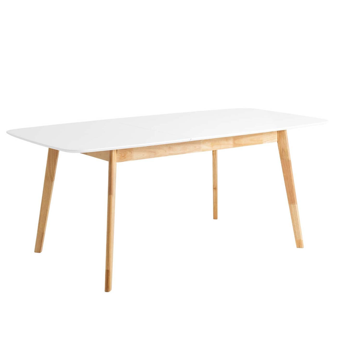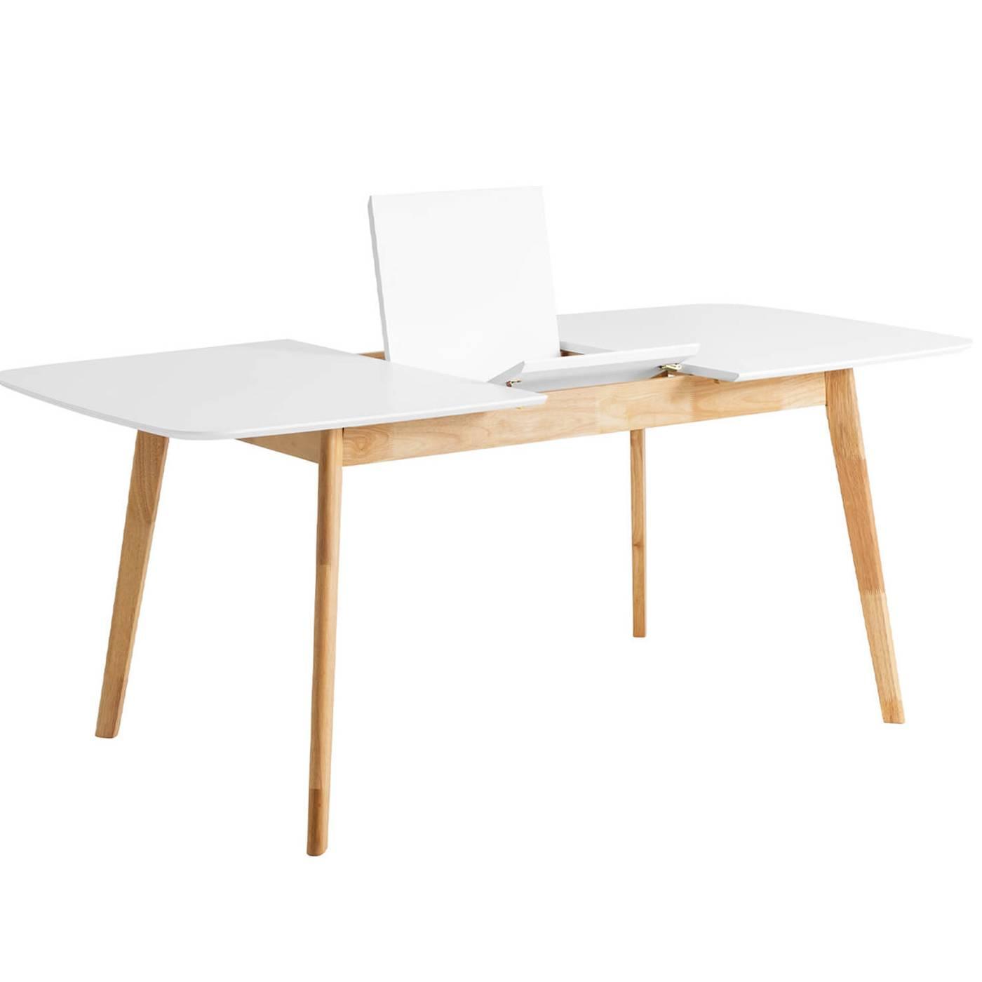Cuatro o seis comensales, eso decides tú. La mesa extensible ENMA pasa de 120 a 150 cm con un sencillo sistema de apertura central, ganando 30 cm extra cuando hace falta. La tapa de MDF con 2 cm de grosor ofrece una superficie lisa y resistente, mientras que las patas de madera de hevea maciza en tono roble claro aportan calidez y firmeza. Un diseño de líneas nórdicas que encaja en comedores actuales sin complicaciones.