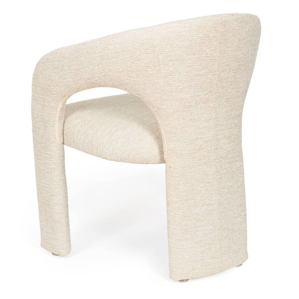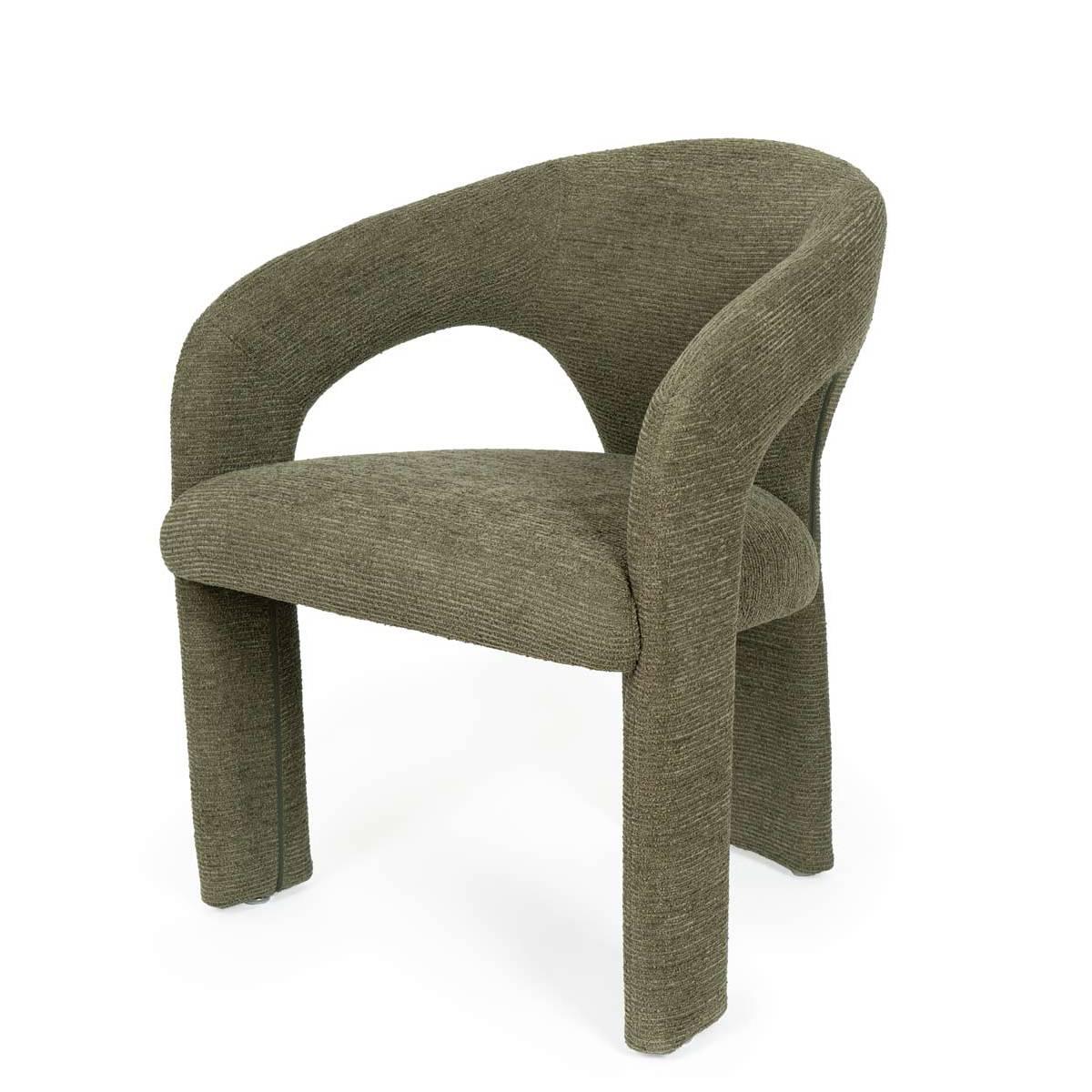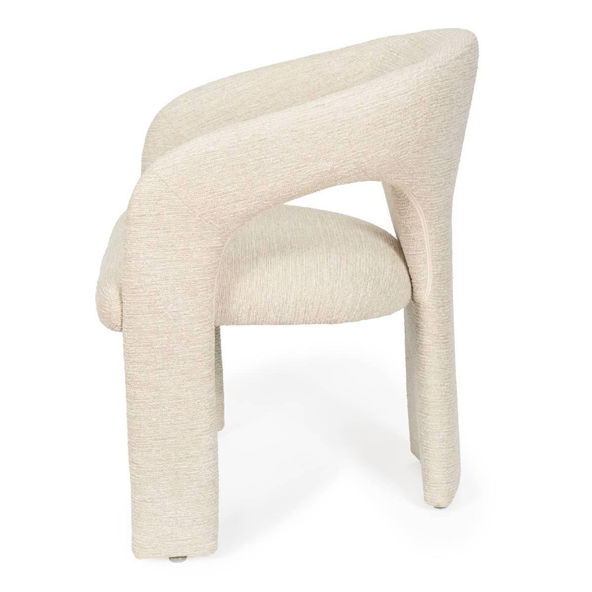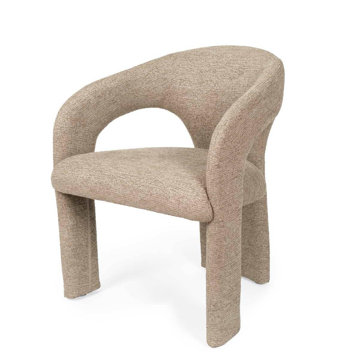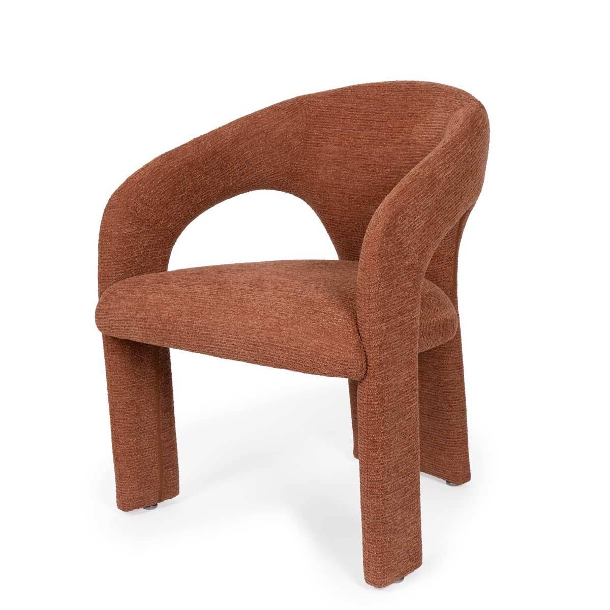La silla LORETTA llama la atención por su silueta continua: respaldo, brazos y patas forman una sola pieza tapizada que envuelve el asiento. El tejido 100% poliéster con test de abrasión de 75.000 ciclos y certificación OEKO-TEX Standard 100 asegura durabilidad y un tacto agradable. Disponible en cuatro colores: beige, taupe, terracota y verde.