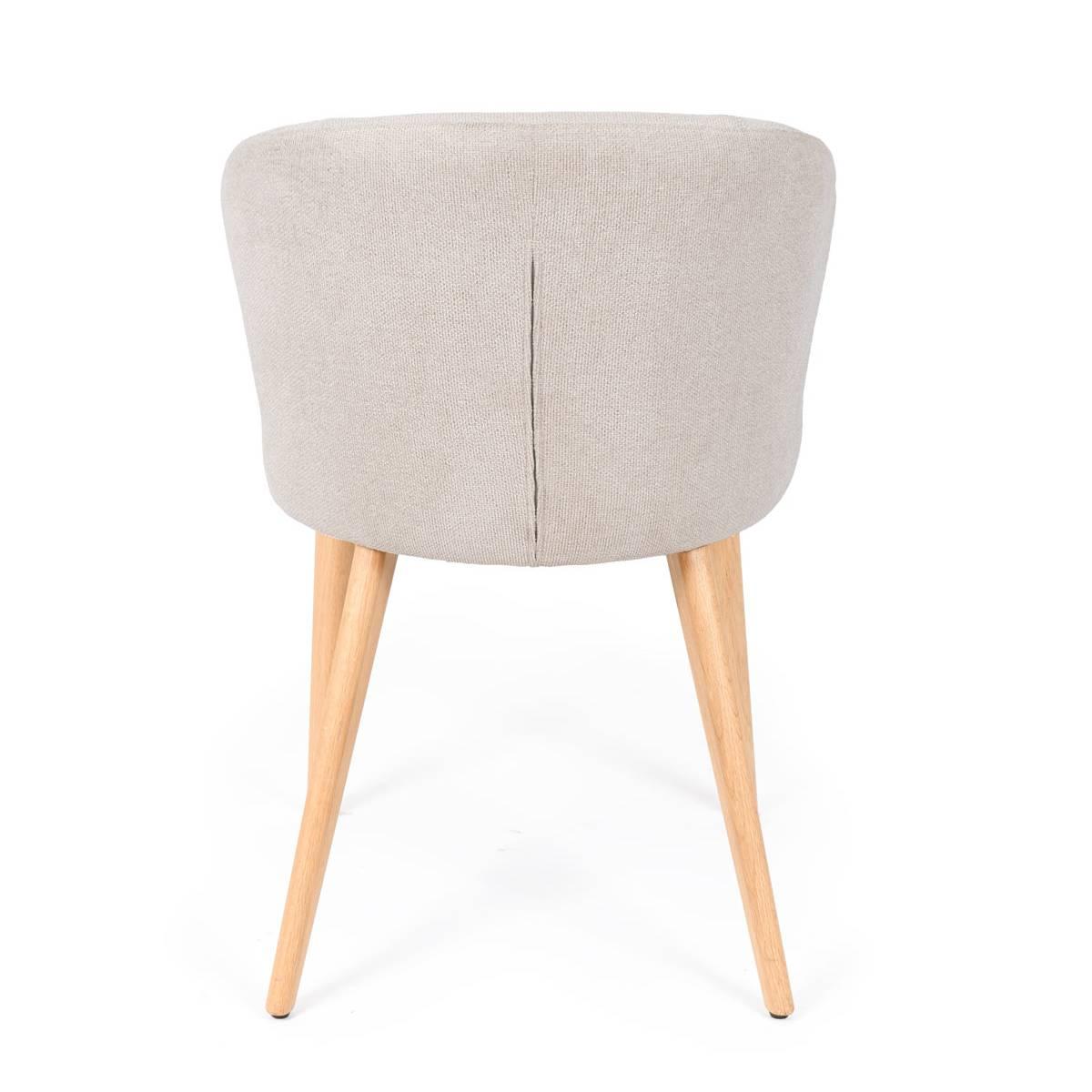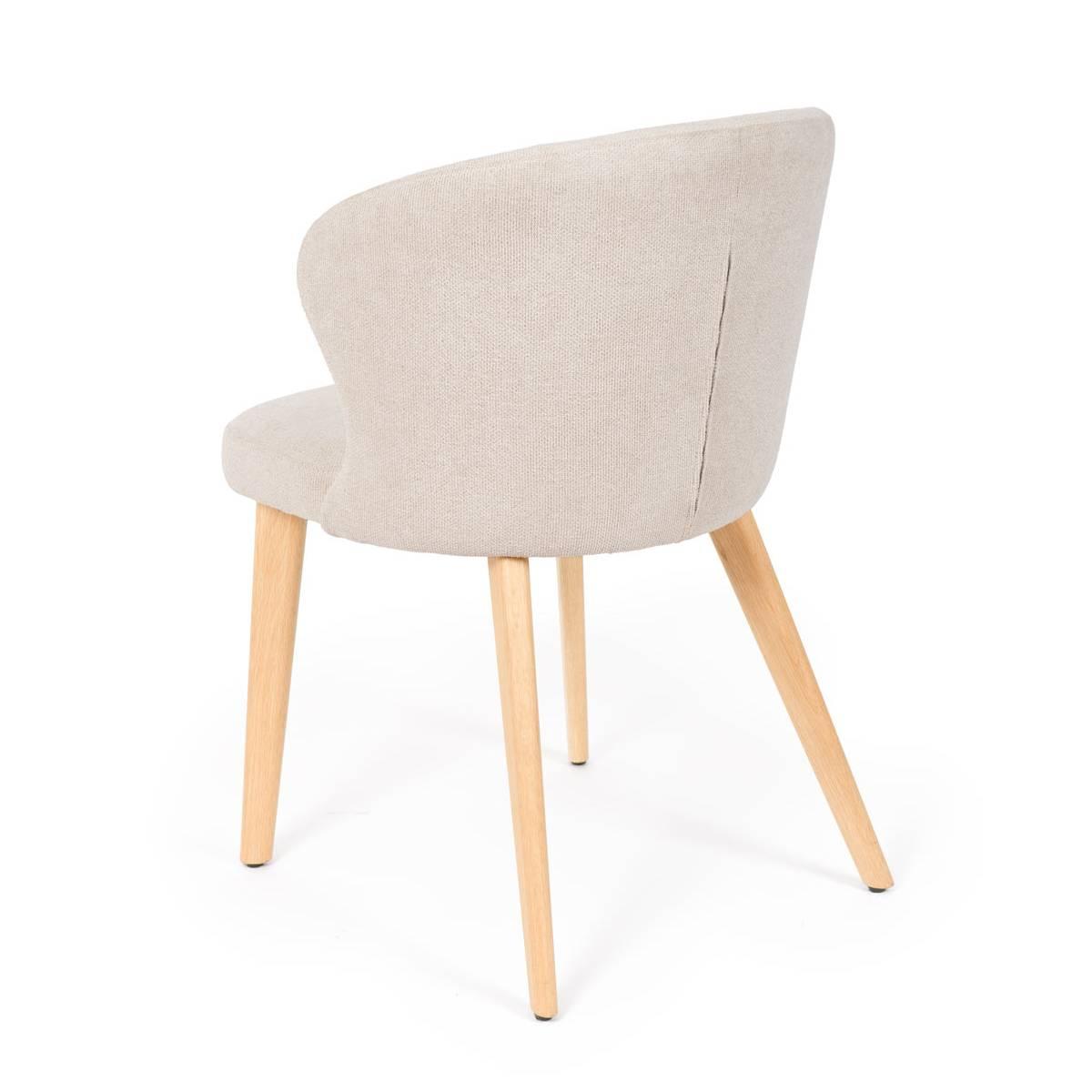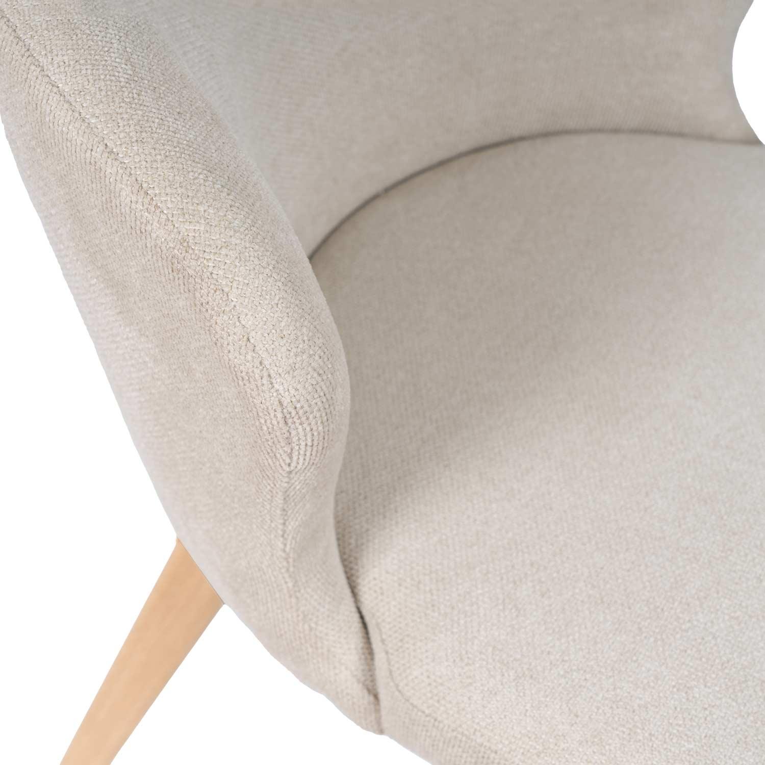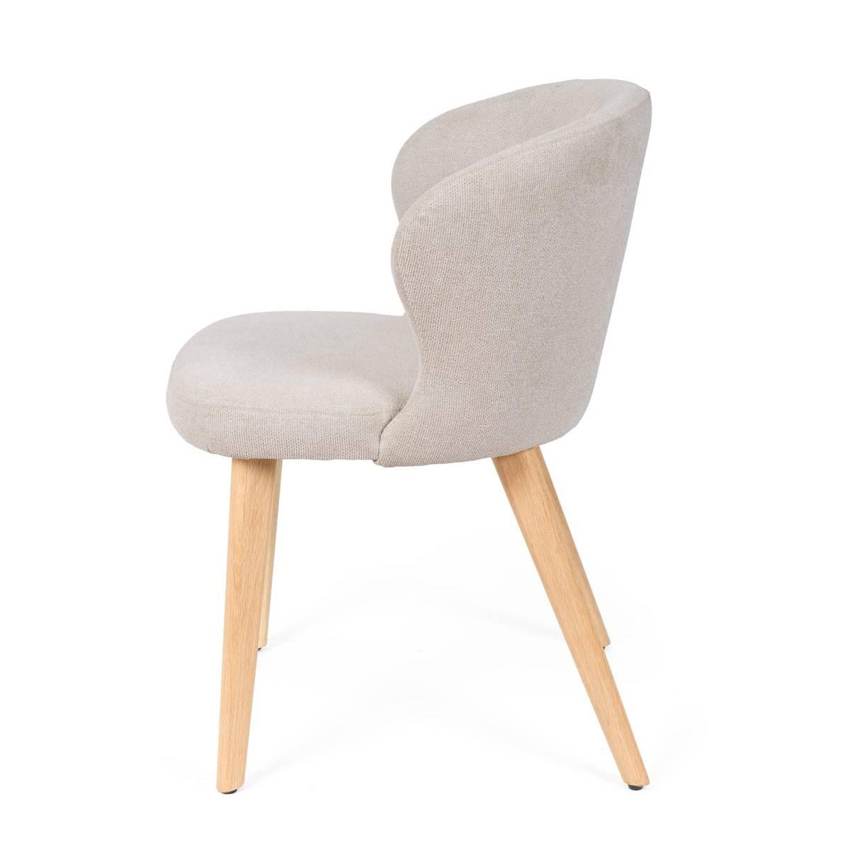 La silla de comedor TANYA tiene un respaldo curvo que envuelve la espalda sin necesidad de reposabrazos, lo que la hace cómoda y a la vez compacta en la mesa. Sus patas de madera de haya maciza, ligeramente inclinadas, combinan estabilidad con ese aire nórdico que funciona en comedores modernos y clásicos. El tapizado en tejido 94% poliéster y 6% nylon lleva certificación OEKO-TEX Standard 100. Disponible en tres colores neutros: beige, gris y taupe.