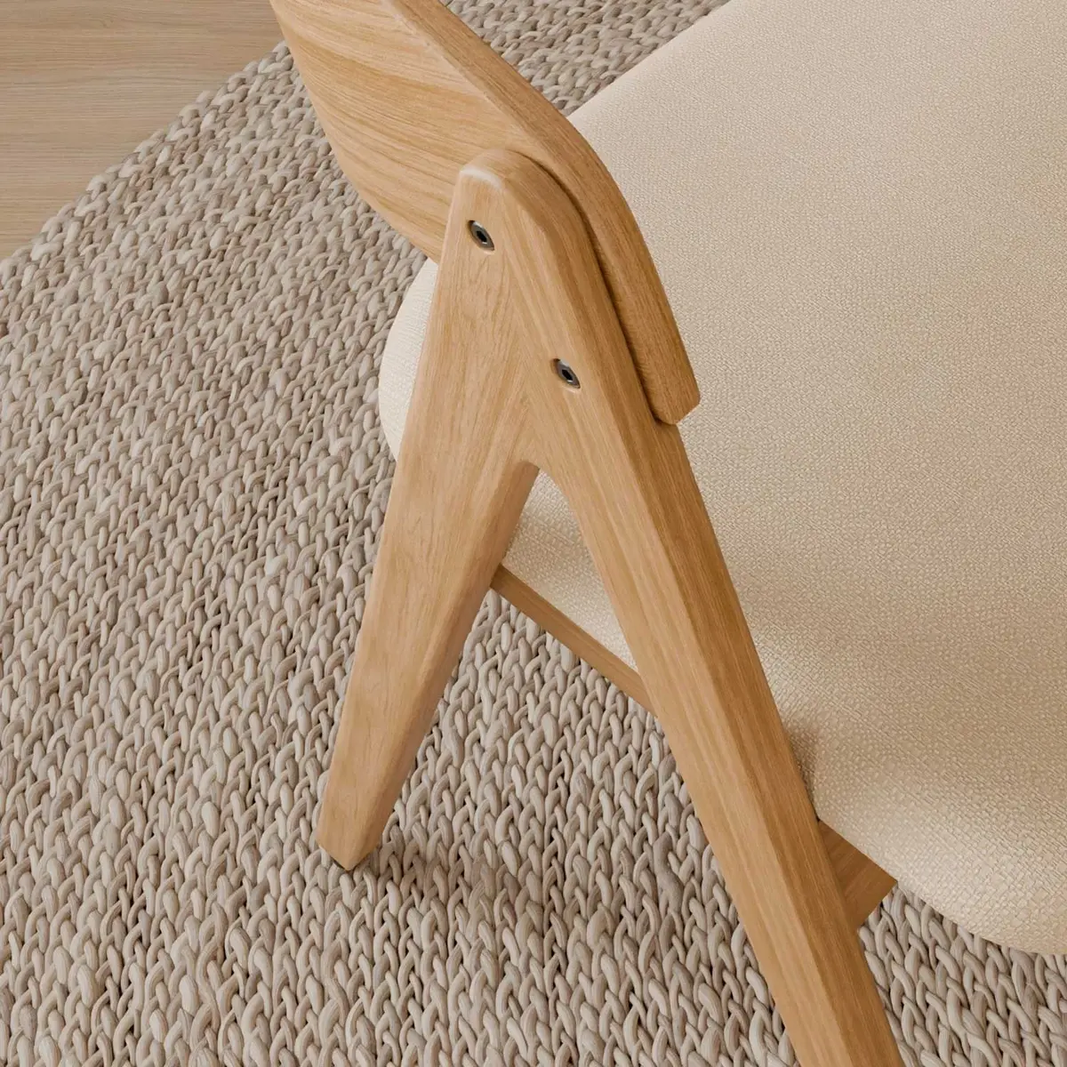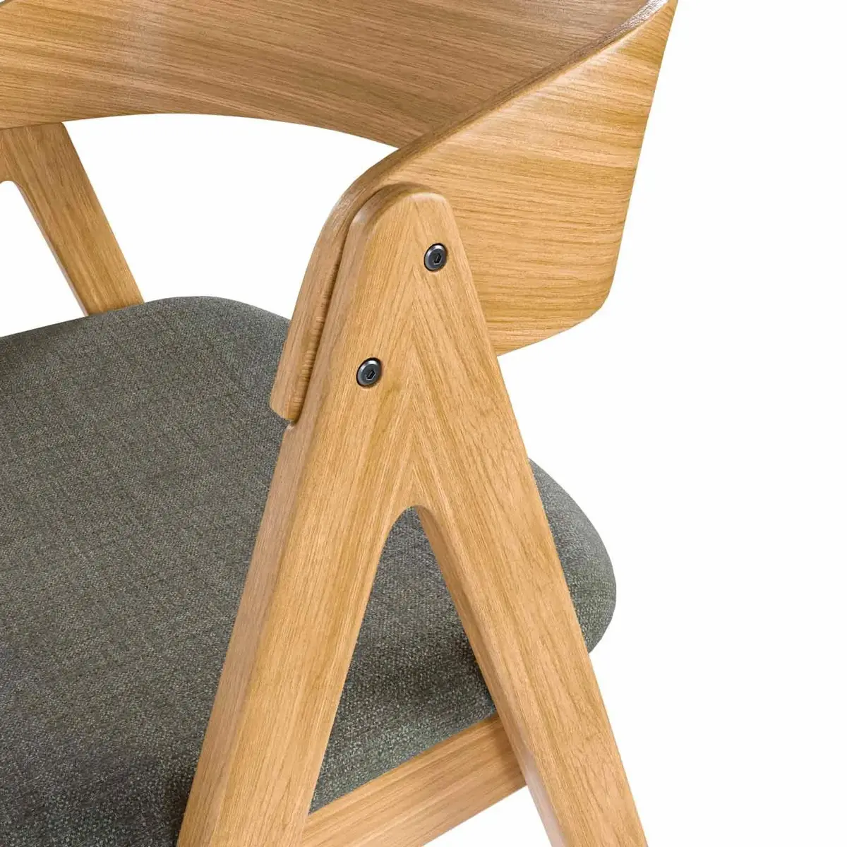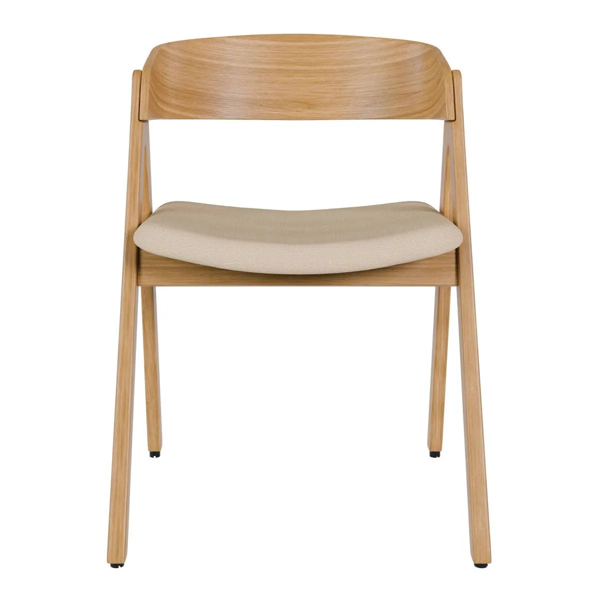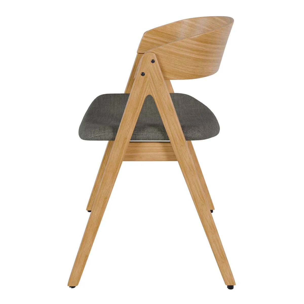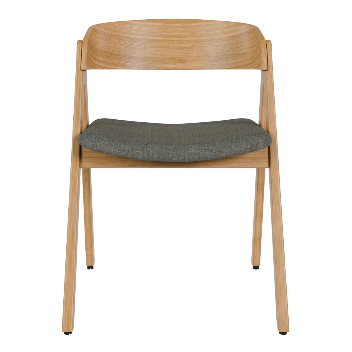 El tono claro de la madera de hevea en acabado roble hace que la silla RINA encaje muy bien en comedores luminosos y ambientes de estilo nórdico. Su silueta con respaldo curvado y patas en ángulo le da un aire actual sin perder comodidad: el asiento tapizado en tela 100% poliéster ofrece un tacto agradable. Puedes elegir entre tres colores de tapizado: beige, gris claro y gris oscuro.