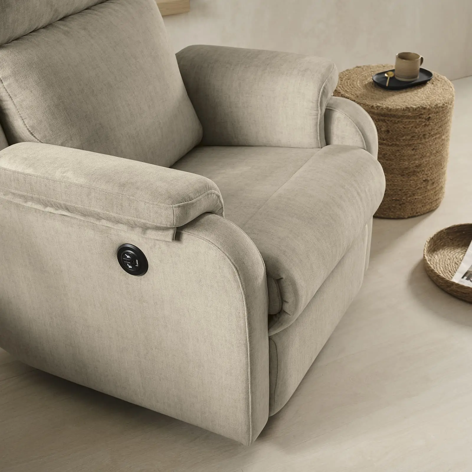 Su sistema pared «0» permite colocarlo muy cerca de la pared sin perder funcionalidad. Las versiones motorizadas incluyen cargador USB tipo C. Las almohadas de asiento, respaldo y brazos son desenfundables para facilitar el mantenimiento.